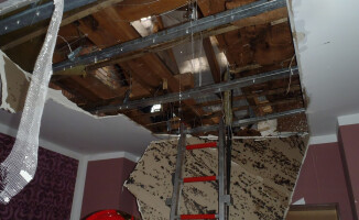 W momencie dojazdu pierwszej jednostki na miejsce ogniem objęty był materiał docieplenia stropu poddasza oraz częściowo drewniane elementy konstrukcji dachowej. Uderzenie pioruna uszkodziło też komin, pokrycie dachu oraz instalację elektryczną w budynku.