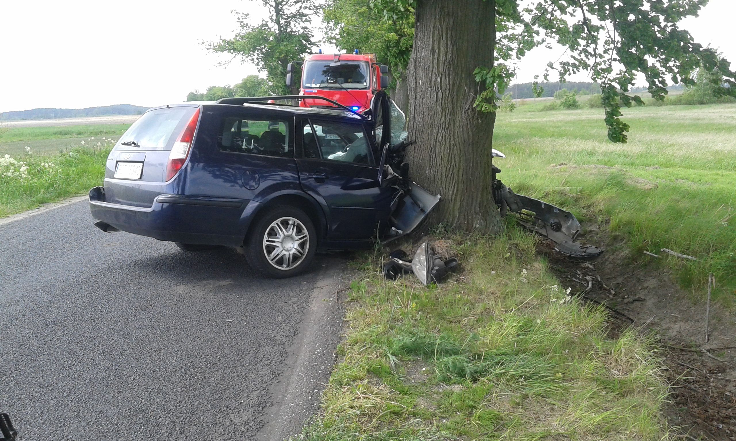Jak informują policjanci, kierujący fordem mondeo nie dostosował prędkości do panujących na drodze warunków i uderzył w drzewo.