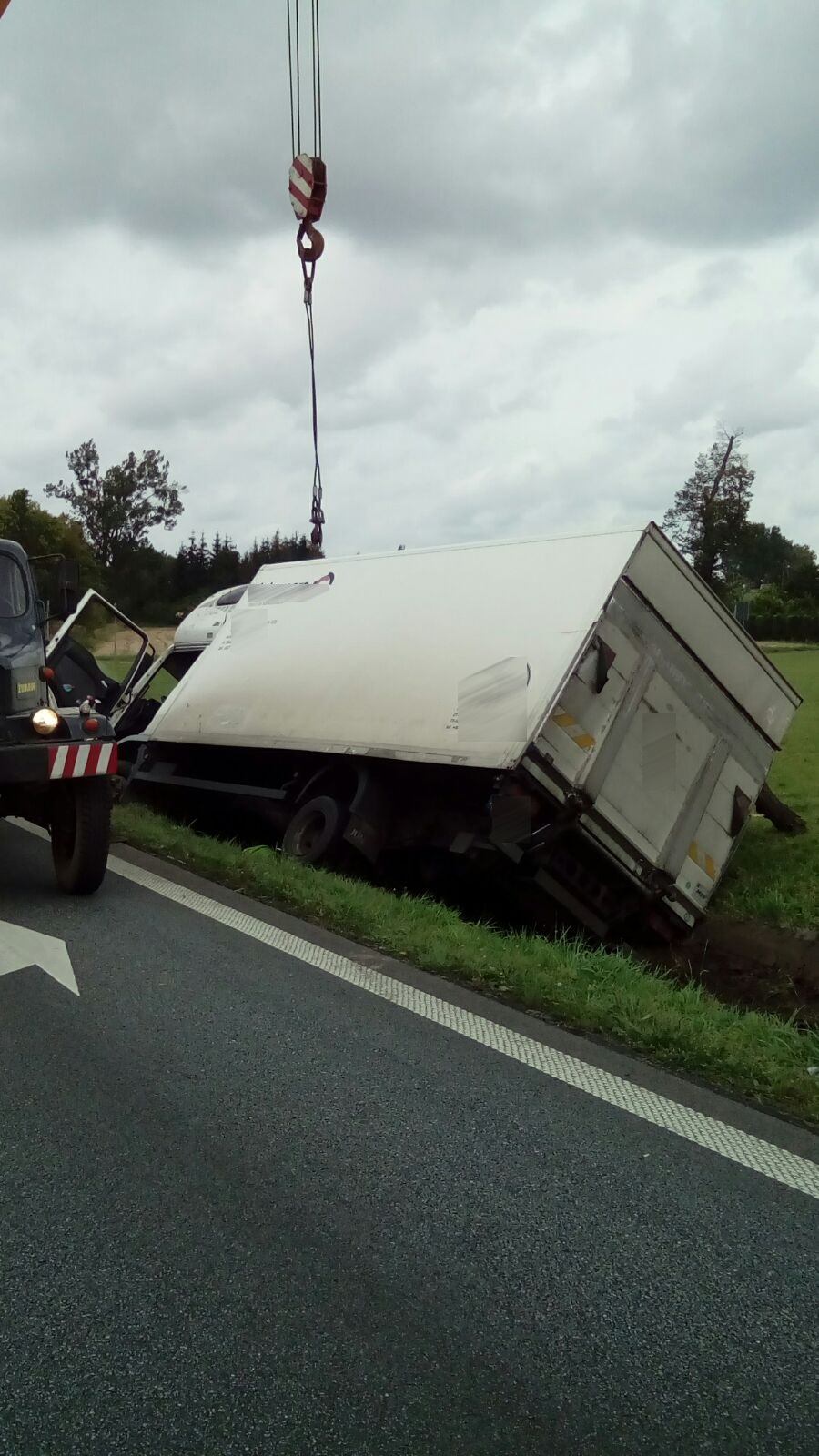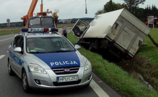 Kierujący samochodem ciężarowym MAN najprawdopodobniej zasnął za kierownicą, zjechał z pasa ruchu i wpadł do przydrożnego rowu.