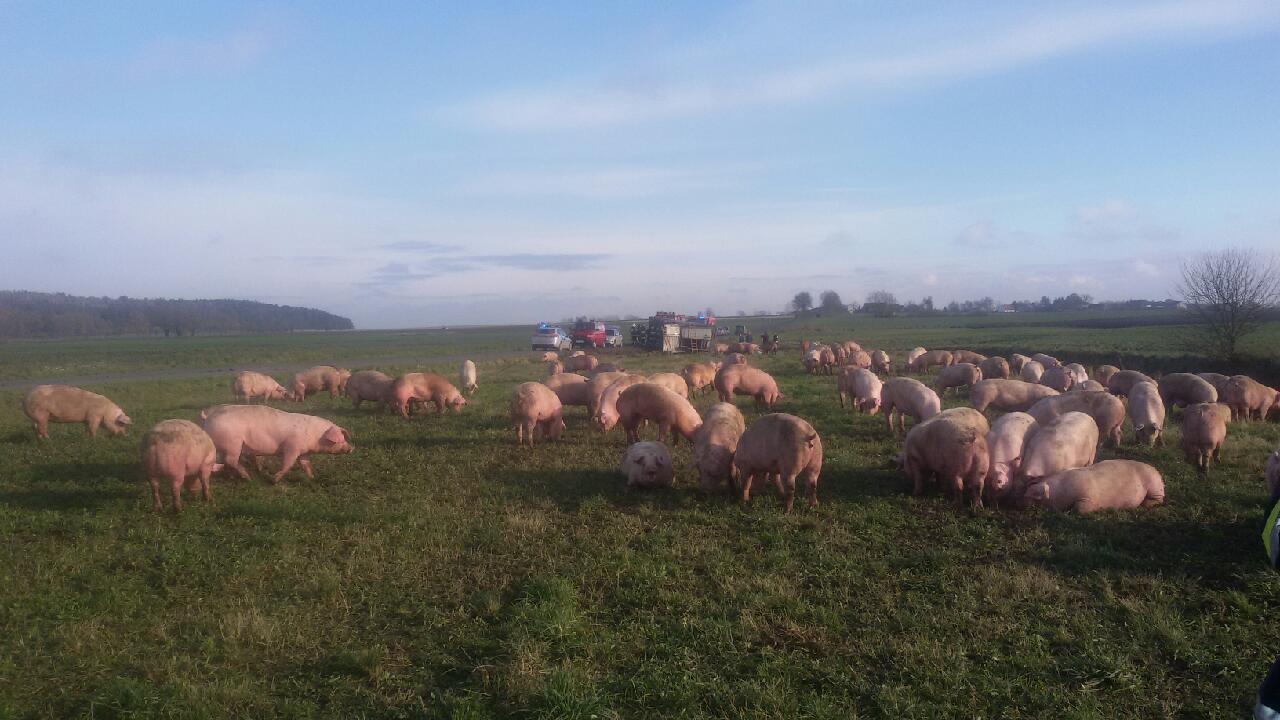Sto tuczników uwolnili strażacy z ciężarówki, która się przewróciła na drodze pomiędzy Kijaszkowem, a Tłukomami w gminie Wysoka. Utrudnienia na drodze. Wprowadzono ruch wahadłowy.
