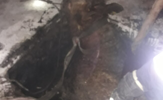 Strażacy uratowali byka w Morzewie. Zwierzę wpadło do kanału obory i nie mogło się stamtąd wydostać.