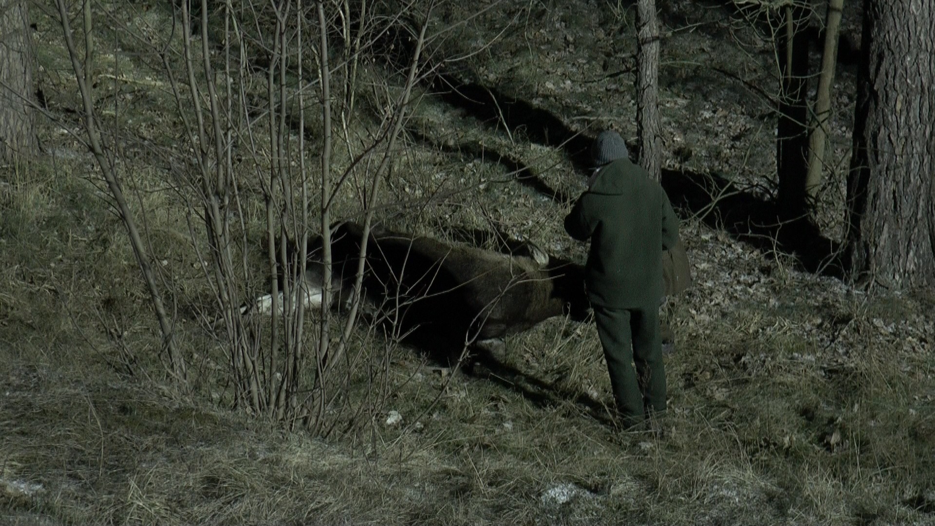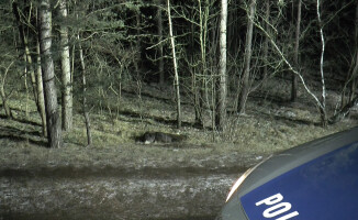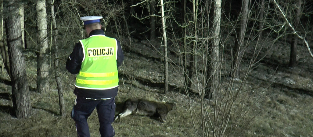 Kierowca na prostym odcinku drogi zobaczył stojące po prawej stronie zwierzę. Nagle łoś wyszedł na jezdnię, wprost pod koła samochodu. Potrącony byk przemieścił się jeszcze w stronę lasu.
