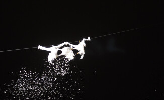 Podniebnemu widowisku towarzyszyła muzyka, a wszystko zakończyło się wspólną zabawą i obsypywaniem białym puchem.