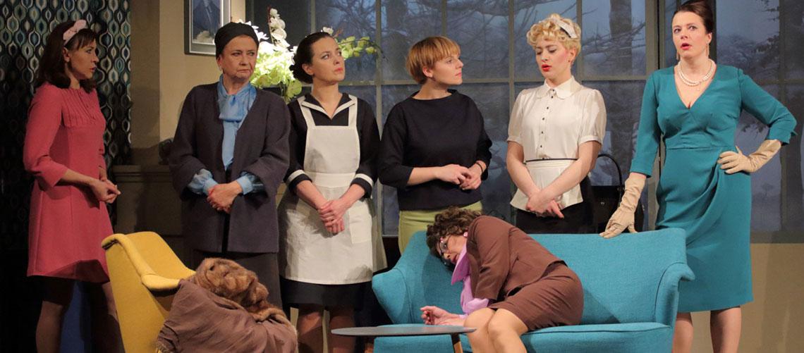 Odcięty od świata dom na pustkowiu. Osiem kobiet – matka, żona, szwagierka, siostra, dwie córki, dwie pokojówki – podejrzanych jest o zabójstwo pana domu. Każda ma motyw, by zabić, każda ma alibi. Kobiety, próbując rozwiązać zagadkę tajemniczej śmierci, zaczynają prowadzić pełną zaskakujących zwrotów akcji, błyskotliwych ripost i kąśliwych uwag grę. Jakie emocje wyzwoli śmierć pana domu? Jakie sekrety zdemaskuje? 8 kobiet to spektakl, który łączy elementy powieści kryminalnej w stylu Agaty Christie, z komedią i melodramatem. Jest także, a może przede wszystkim, opowieścią o różnych typach, wymiarach i tajemnicach kobiecości. Osiem kobiet i osiem wspaniałych aktorek na scenie.