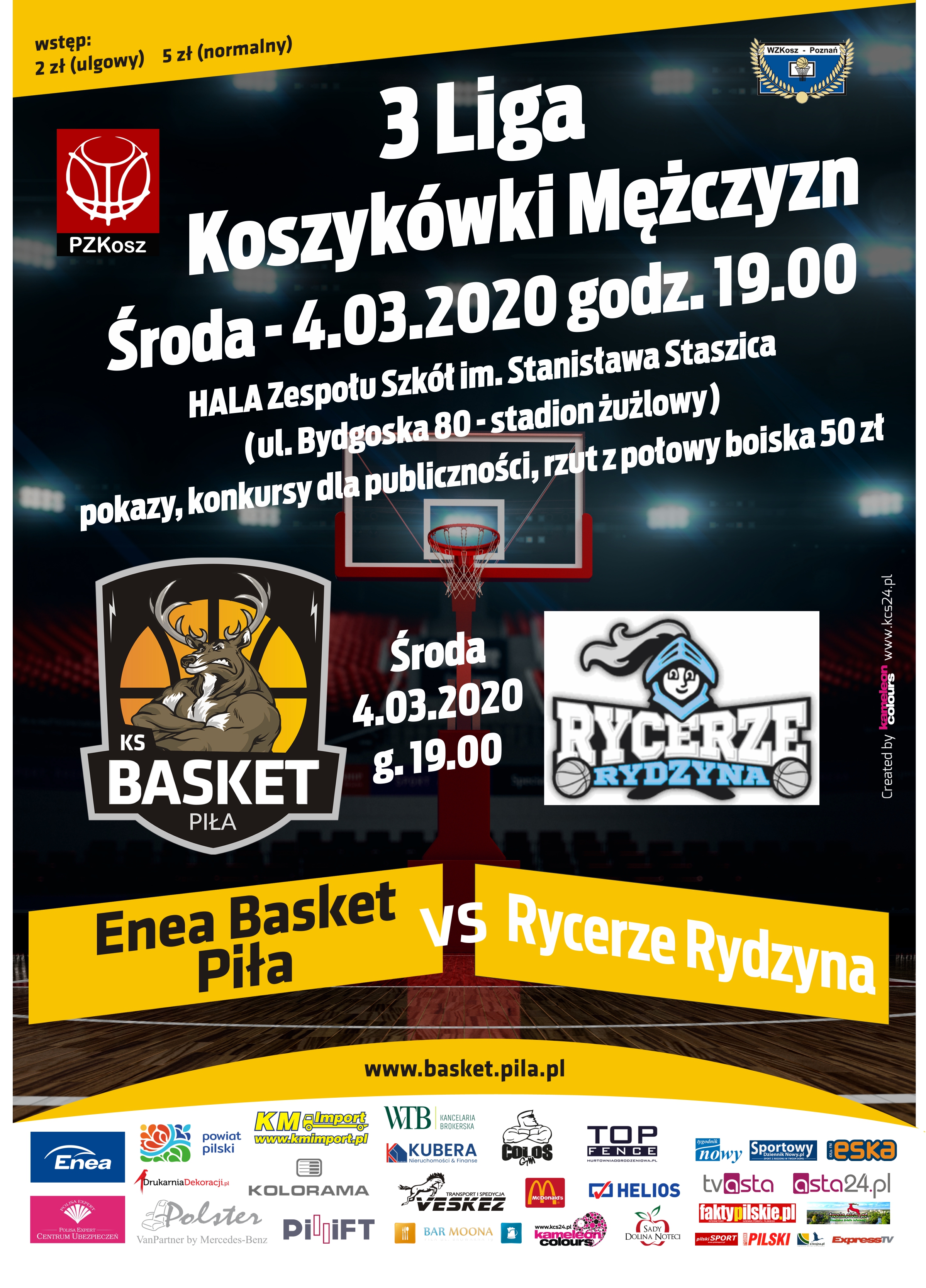 W środę 4 marca o godz. 19.00 w hali Zespołu Szkół im. Stanisława Staszica w Pile przy ul. Bydgoskiej 80 pilscy koszykarze podejmą trzecią drużynę ligowej kampanii Rycerzy Rydzyna. W pierwszym meczu tych zespołów lepsi byli Rycerze pokonując Basket 74:67. Trzy dni później w sobotę 7 marca do Piły przyjeżdża lider trzecioligowych zmagań PGE Spójnia II Stargard. Młoda i świetnie wyszkolona drużyna, będąca zapleczem ekstraklasowej Spójni stawi czoła pilskim koszykarzom. Jak podkreśla Przemysław Pochylski - w tym meczu, mówiąc żargonem koszykarskim, zostaną oddzieleni chłopcy od mężczyzn. W tym meczu okaże się na jakim etapie i w jakiej formie są obie drużyny tuż przed decydującymi starciami w półfinałach i finale o awans do II PLK. Początek spotkania o godz. 17.00 również hali Zespołu Szkół im. Stanisława Staszica w Pile przy ul. Bydgoskiej 80.
