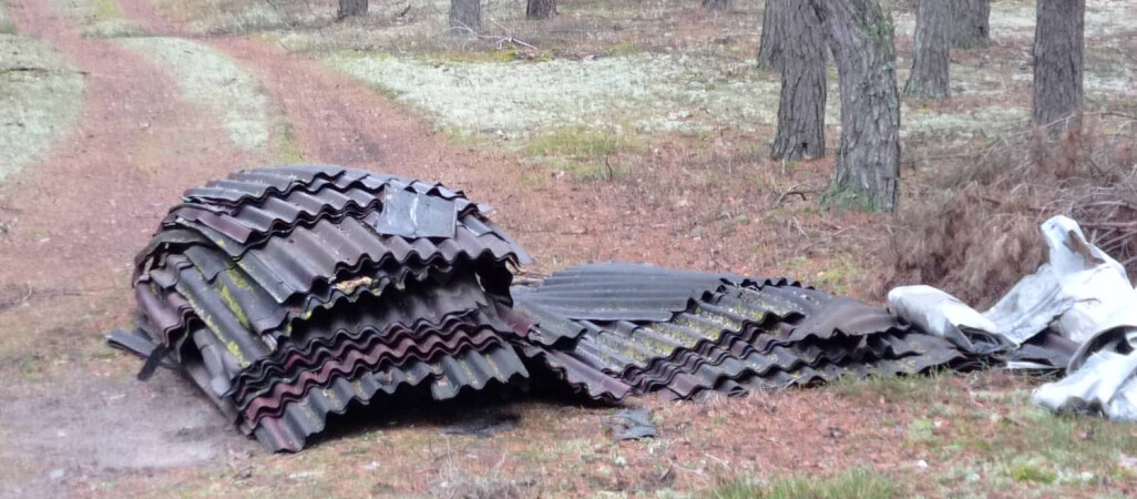 Leśnicy dostali sygnał o śmieciach wyrzuconych w lesie. Strażnicy na środku drogi znaleźli pozostawione płyty onduliny.