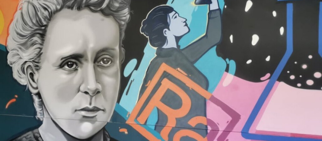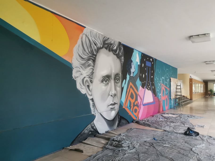 Mural przedstawiający Marię Skłodowską-Curie ma przypominać uczniom o jej osiągnięciach naukowych. Ma również przypominać, że patronka szkoły była dwukrotną laureatką Nagrody Nobla, m.in. za odkrycie polonu i radu.
