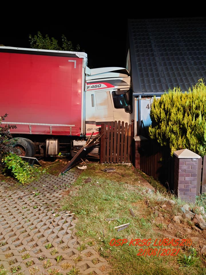 Wczoraj, tuż przed godziną 22 w miejscowości Dębe doszło do wypadku samochodu ciężarowego. Tir z impetem uderzył w jeden z domów jednorodzinnych. Siła uderzenia była tak duża, że uszkodzeniu uległa jedna ze ścian budynku. Na miejscu pracowali strażacy z JRG w Czarnkowie i OSP w Lubaszu.
