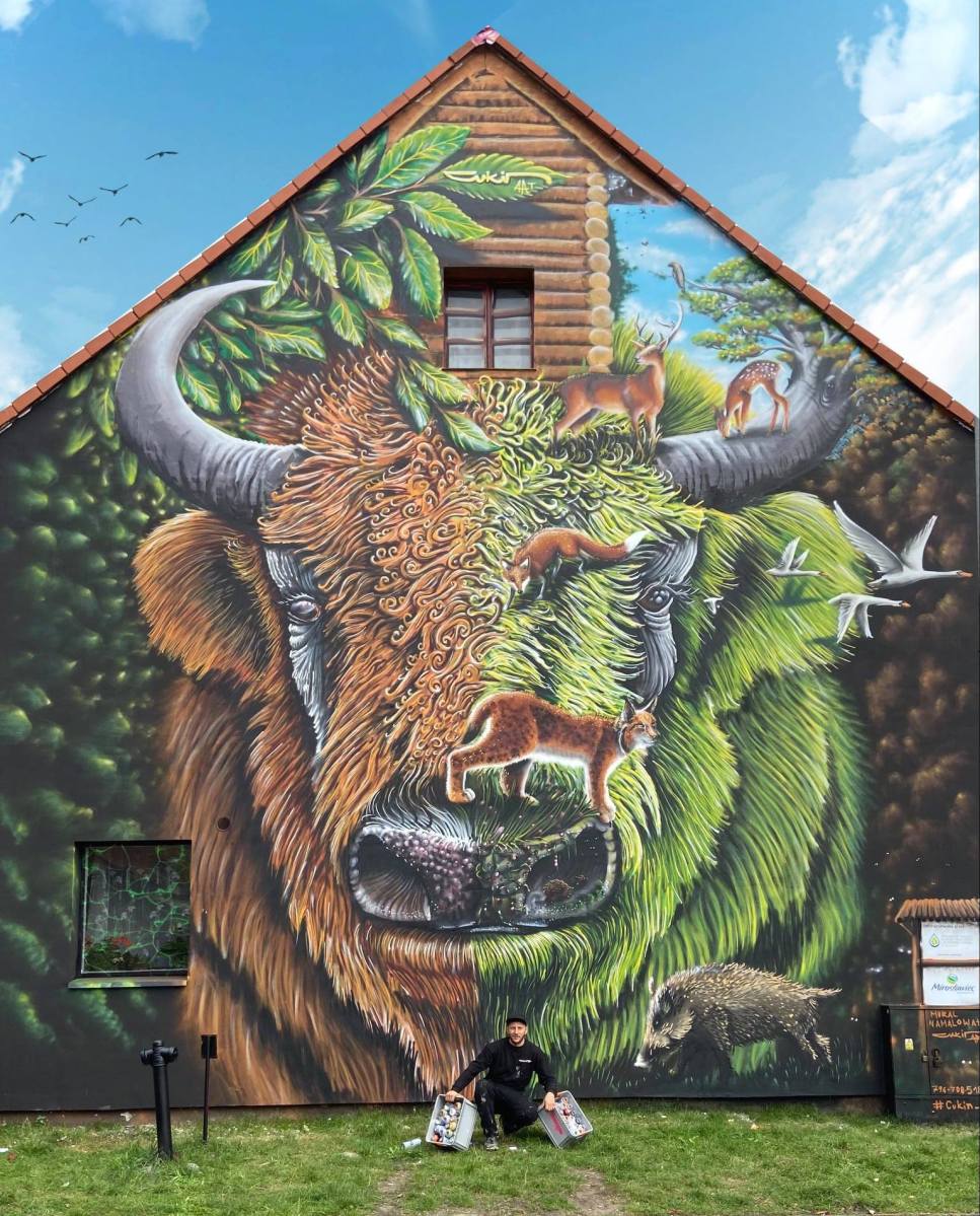 Autorem jest artysta, który w mediach społecznościowych przedstawia się jako Cukin Koszalin. Motywem przewodnim muralu jest zdanie: Dzika przyroda zawiera odpowiedzi na pytania, których człowiek nie nauczył się zadawać