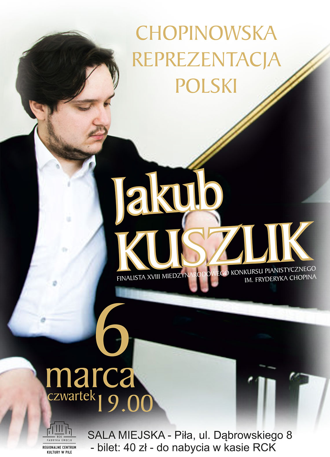 Chopinowska Reprezentacja Polski Jakub Kuszlik - 6 marca, godz. 19:00, Sala Miejska przy ul. Dąbrowskiego 8 w Pile
