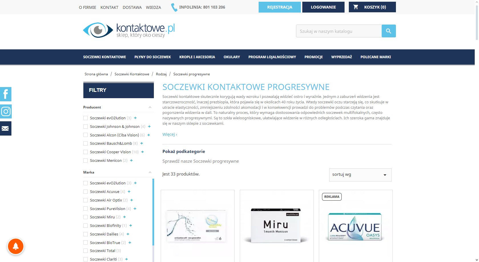 Sklep kontaktowe.pl - Soczewki progresywne to godny polecenia, działający w branży z powodzeniem od kilku lat sklep optyczny w sieci, dzięki któremu w kilku prostych krokach zamówimy i szybko otrzymamy paczkę z soczewkami niezbędnymi naszym oczom do prawidłowego funkcjonowania. Nasza oferta szkieł korekcyjnych z pewnością pozwoli Ci wybrać szkła idealnie dostosowane do wygodnego użytkowania w każdych warunkach.