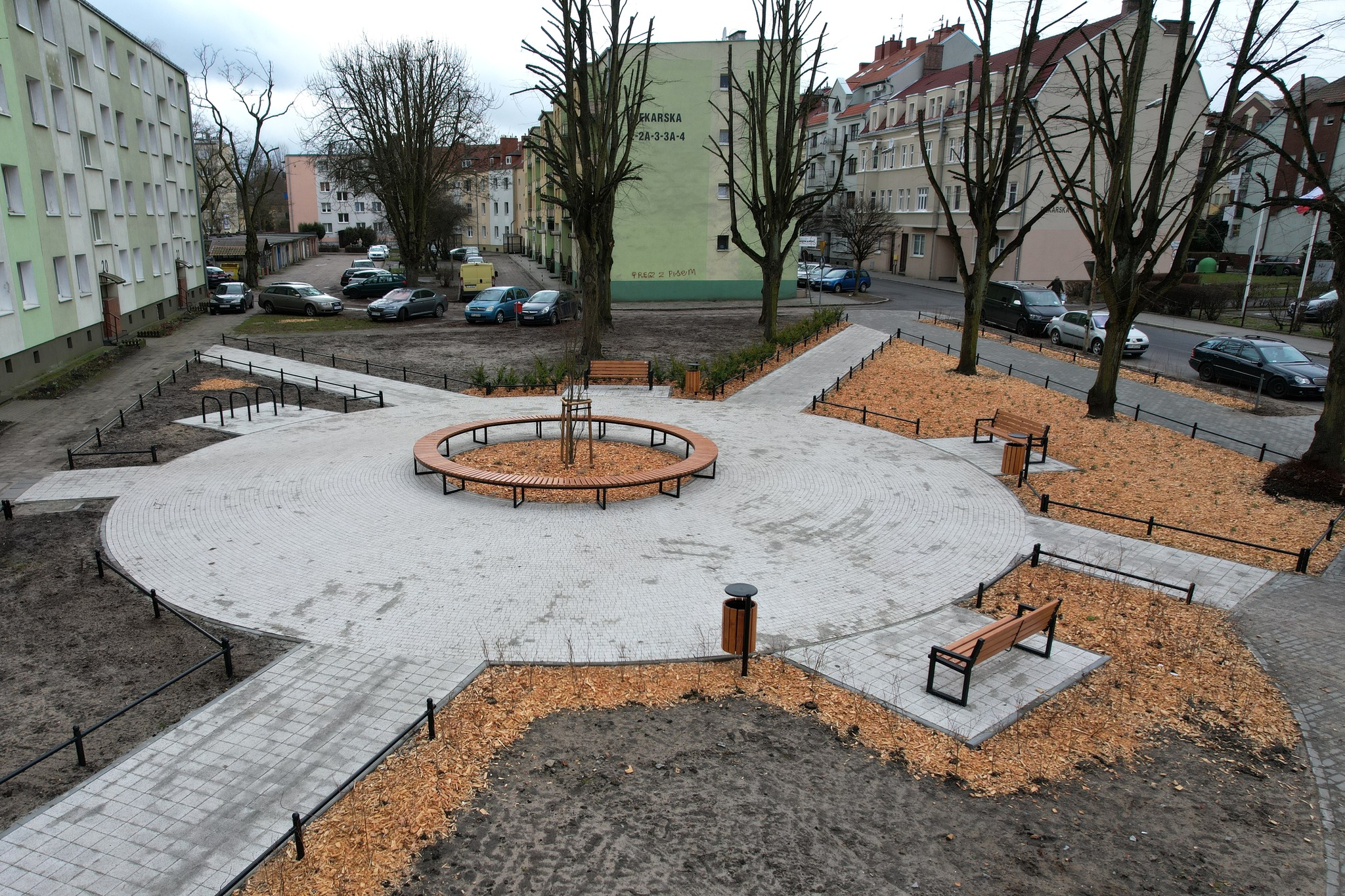 W ramach inwestycji wykonano nową nawierzchnię z płukanej płytki betonowej, ustawiono nowe ławki i kosze, a także zainstalowano oświetlenie oraz dokonano nasadzeń drzew, krzewów i bylin. Prace wartości ponad 300 tys. zł wykonane zostały pod nadzorem Zarządu Dróg i Zieleni w Pile.