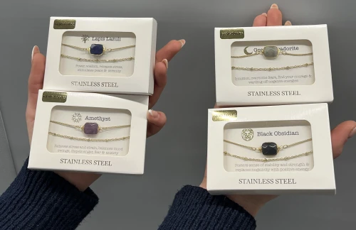 Bransoletki z kamieniami szlachetnymi łączą naturalne piękno kamieni z nowoczesnym designem. Ametyst, szary labradoryt, czarny obsydian, lazuryt i wiele innych nie tylko zachwycają kolorami, ale i niosą pozytywne właściwości energetyczne. Bransoletki są komfortowe w noszeniu i świetnie komponują się zarówno z casualowymi jak i wieczorowymi stylizacjami, dodając im szyku i subtelnego luksusu. Idealne dla osób szukających biżuterii, która łączy estetykę z duchowym znaczeniem.