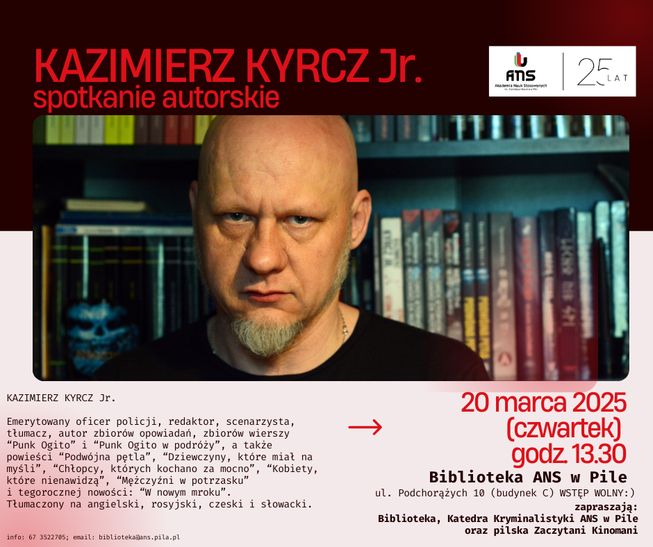 Kazimierz Kyrcz Jr. będzie gościem na spotkaniu z czytelnikami w bibliotece Akademii Nauk Stosowanych w Pile. Już w czwartek, 20 marca o godz. 13.30 będzie promował swoją nową książkę "W Nowym Mroku". Wstęp wolny.