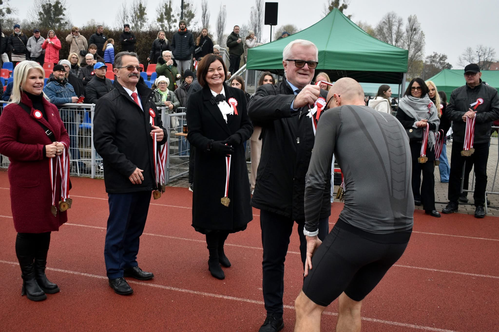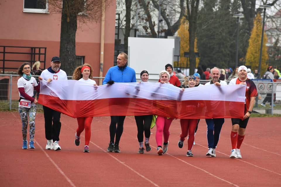 O 12:00 wspólne odśpiewanie hymnu i wystartował bieg główny dla dorosłych, którzy pobiegną ulicami miasta. Po sportowych emocjach na uczestników czekały rogale świętomarcińskie. Zorganizowano także kiermasz charytatywny dla Szymona Lipińskiego.