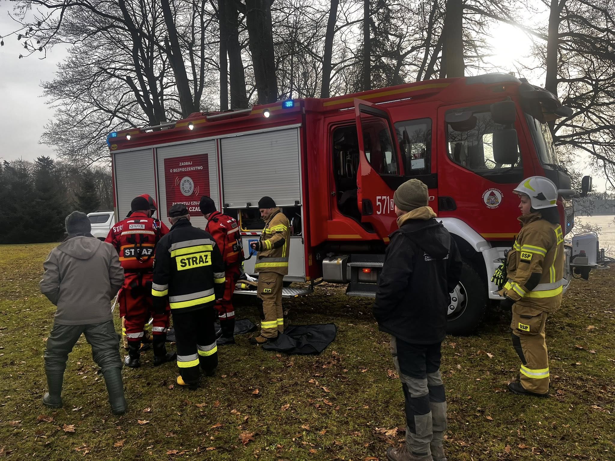 W akcji ratunkowej uczestniczą dwa zastępy straży pożarnej z Wałcza, strażacy ochotnicy z Piecnika oraz pracownicy Zachodniopomorskiego Towarzystwa Przyrodniczego "Dzika Zagroda" i lekarz weterynarii.