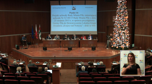 Sesja Rady Miasta z protestami i bannerem w tle - grafika