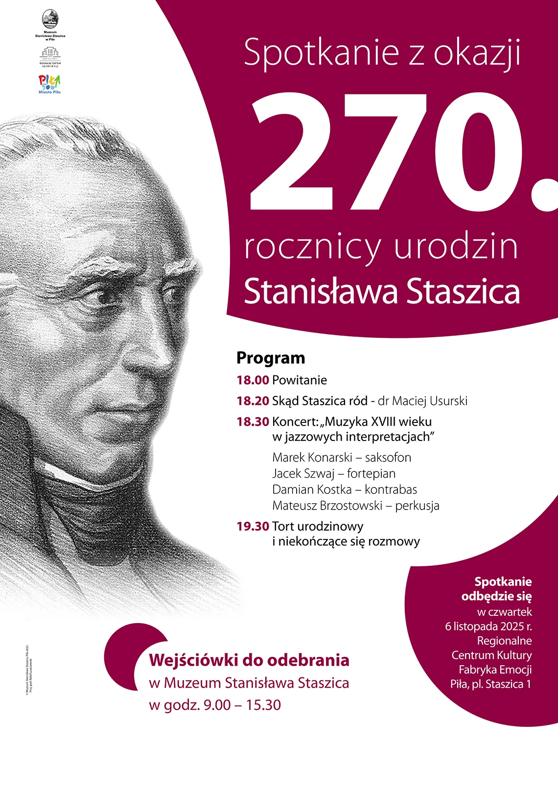 Wejściówki do odebrania w Muzeum Stanisława Staszica, ul. Browarna 18, w godz. 9.00–15.30