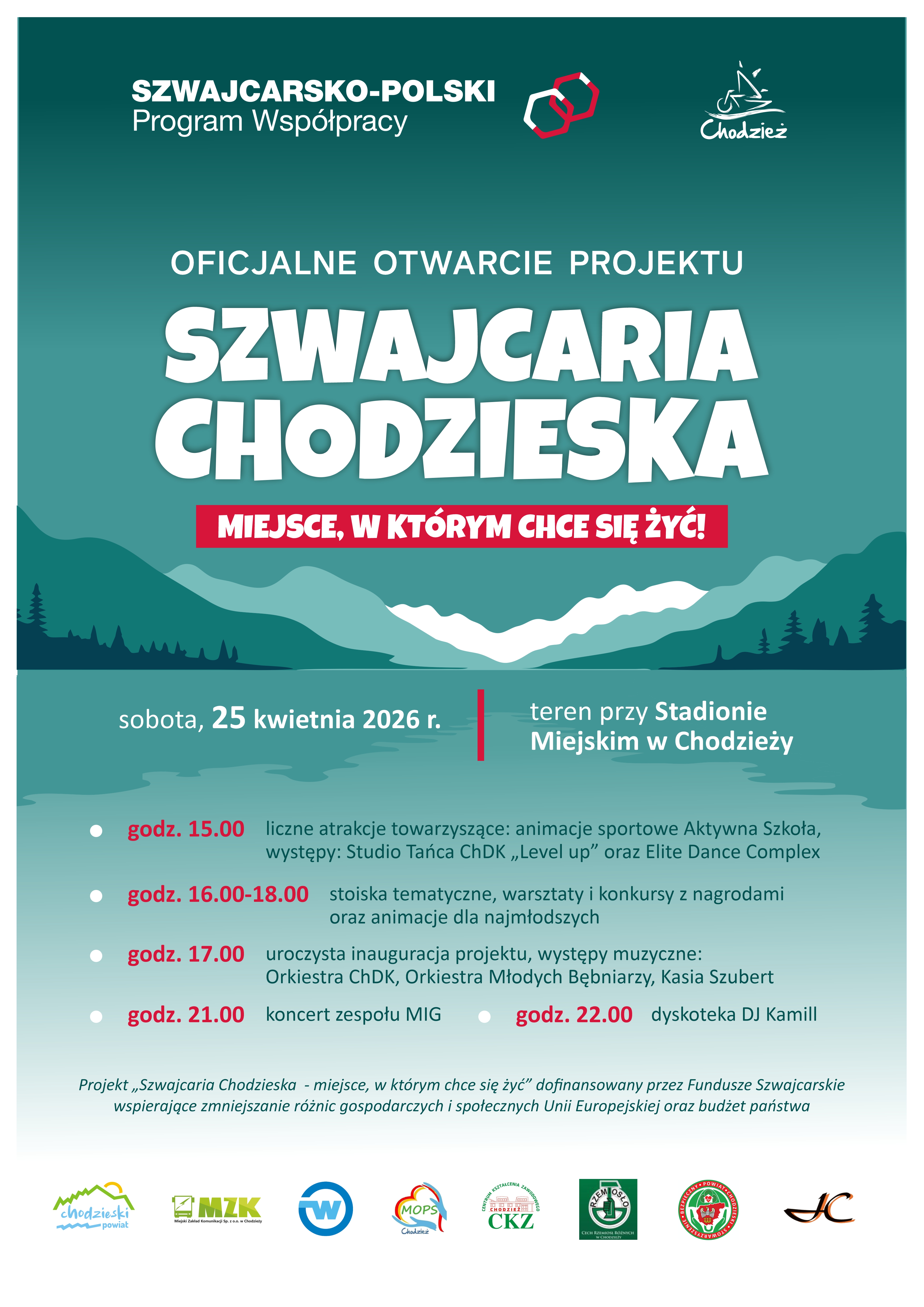 Projekt "Szwajcaria Chodzieska - miejsce, w którym chce się żyć" dofinansowany przez Fundusze Szwajcarskie wspierające zmniejszenie różnic gospodarczych i społecznych Unii Europejskiej oraz budżet państwa.