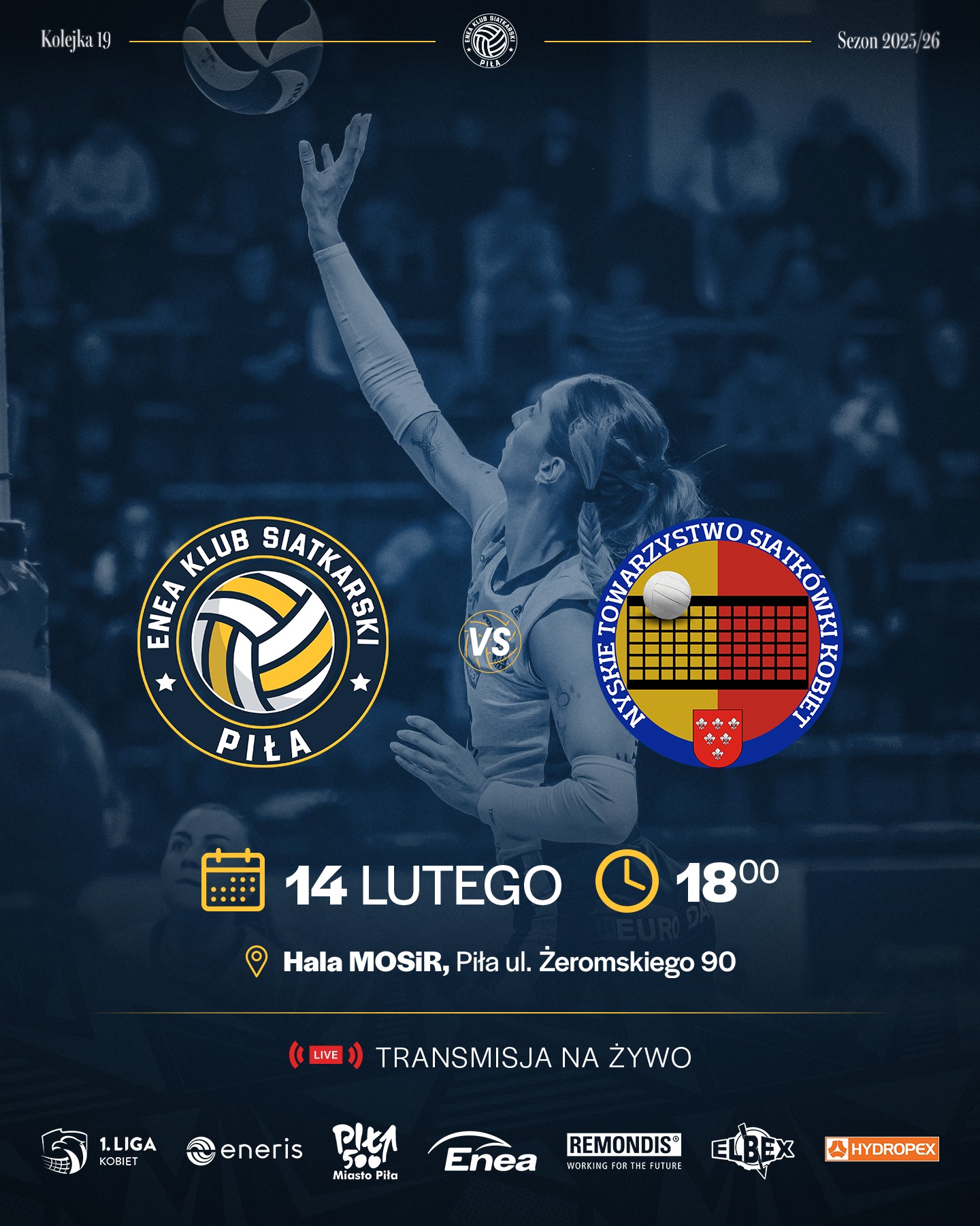 W sobotę, 14  lutego o godz. 18:00 na hali MOSiR w Pile rozegrany zostanie mecz 1. Ligi Siatkówki Kobiet pomiędzy ENEA KS PIŁA - NTSK PANS KOMUNALNIK NYSA.