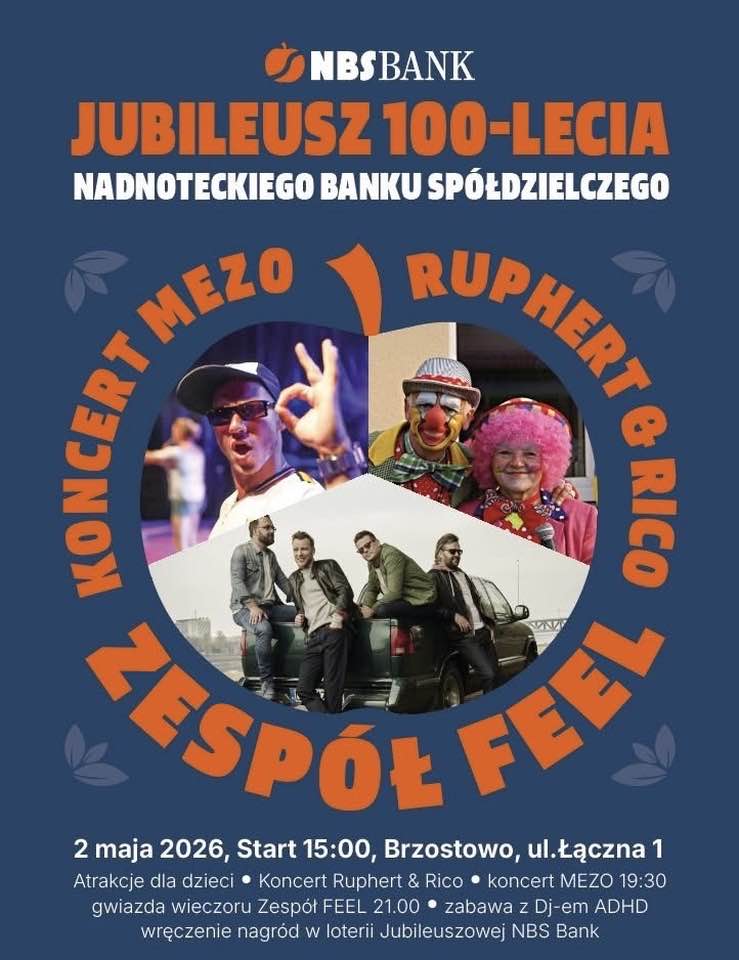 W sobotę, 2 maja od godz. 15:00 przy ul. Łącznej 1 w Brzostowie odbędzie się Jubileusz 100 - lecia Nadnoteckiego Banku Spółdzielczego.
