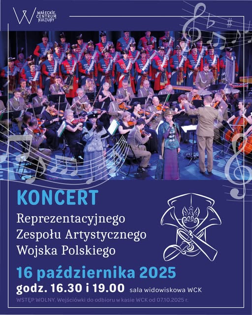 W czwartek 16 października o godz. 16:30 i 19:00 na sali widowiskowej Wałeckiego Centrum Kultury odbędzie się koncert Reprezentacyjnego Zespołu Artystycznego Wojska Polskiego.