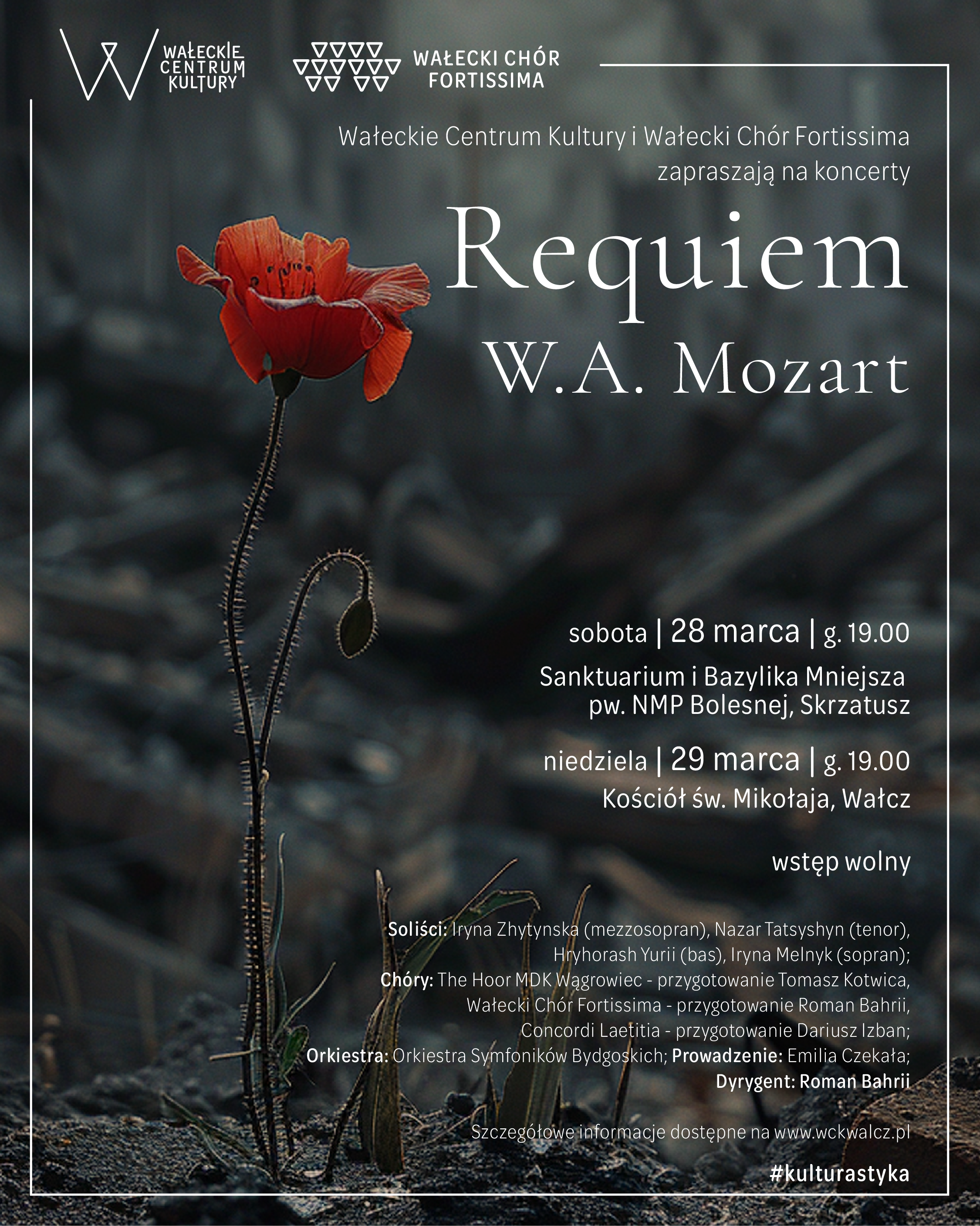 W sobotę i niedzielę (28 i 29 marca) Sanktuarium i Bazylika Mniejsza pw. Najświętszej Maryi Panny Bolesnej Pani Skrzatuskiej w Skrzatuszu oraz w Kościele św. Mikołaja w Wałczu odbędą się koncerty REQUIEM Wolfganga Amadeusza Mozarta.