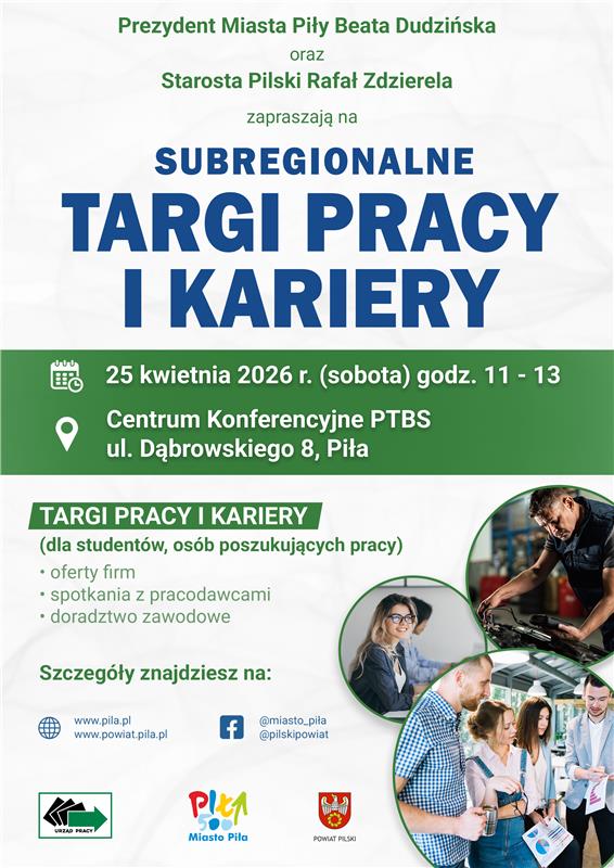 W sobotę, 25 kwietnia w godz. 11:00-13:00 w Centrum Konferencyjnym PTBS w Pile odbędą się Subregionalne Targi Pracy i Kariery.