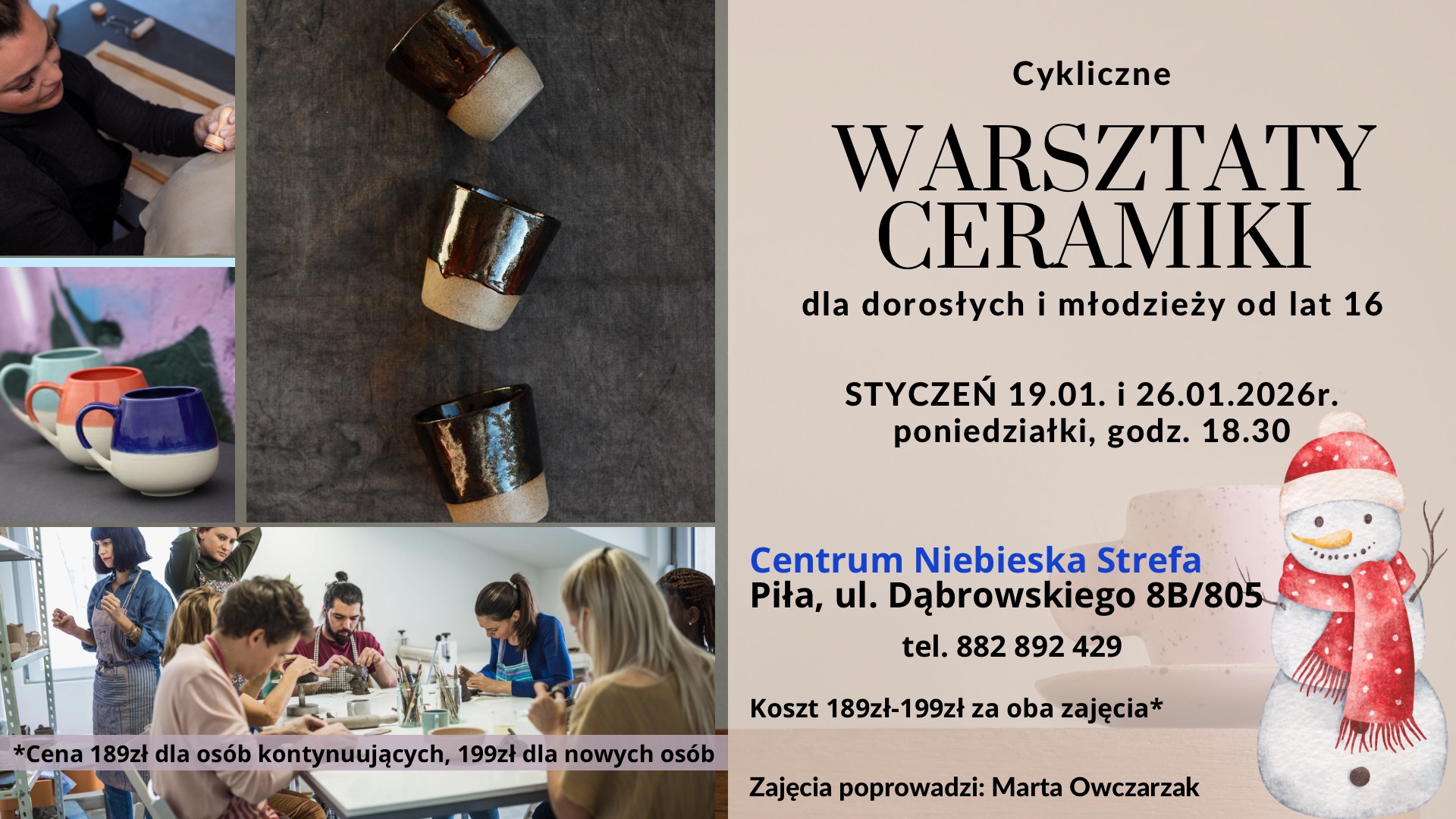 W poniedziałek, 19 stycznia o godz. 18:30 przy ul. Dąbrowskiego 8/805 w Pile odbędą się Styczniowe Warsztaty Ceramiki dla dorosłych.