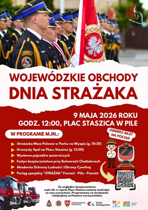- przejazd specjalnego pociągu „STRAŻAK” na trasie Poznań – Piła – Poznań (szczegóły: www.gov.pl)